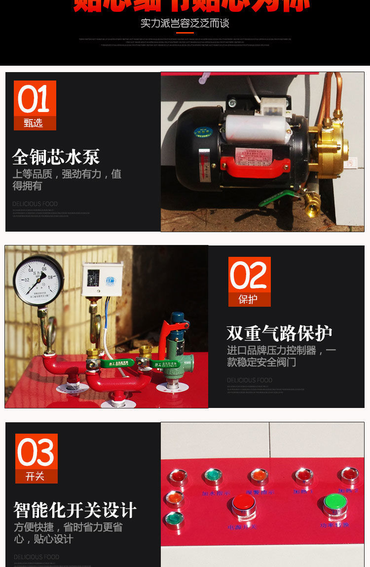全自动燃油蒸汽锅炉配置的是先进的只能全自动控制系统,还有全中文液晶显示屏及人机界面,用户只要事先将作业所需参数设定好,锅炉就能按照设定程序启动,并在运行的过程中自动调节负荷、自动给水等。